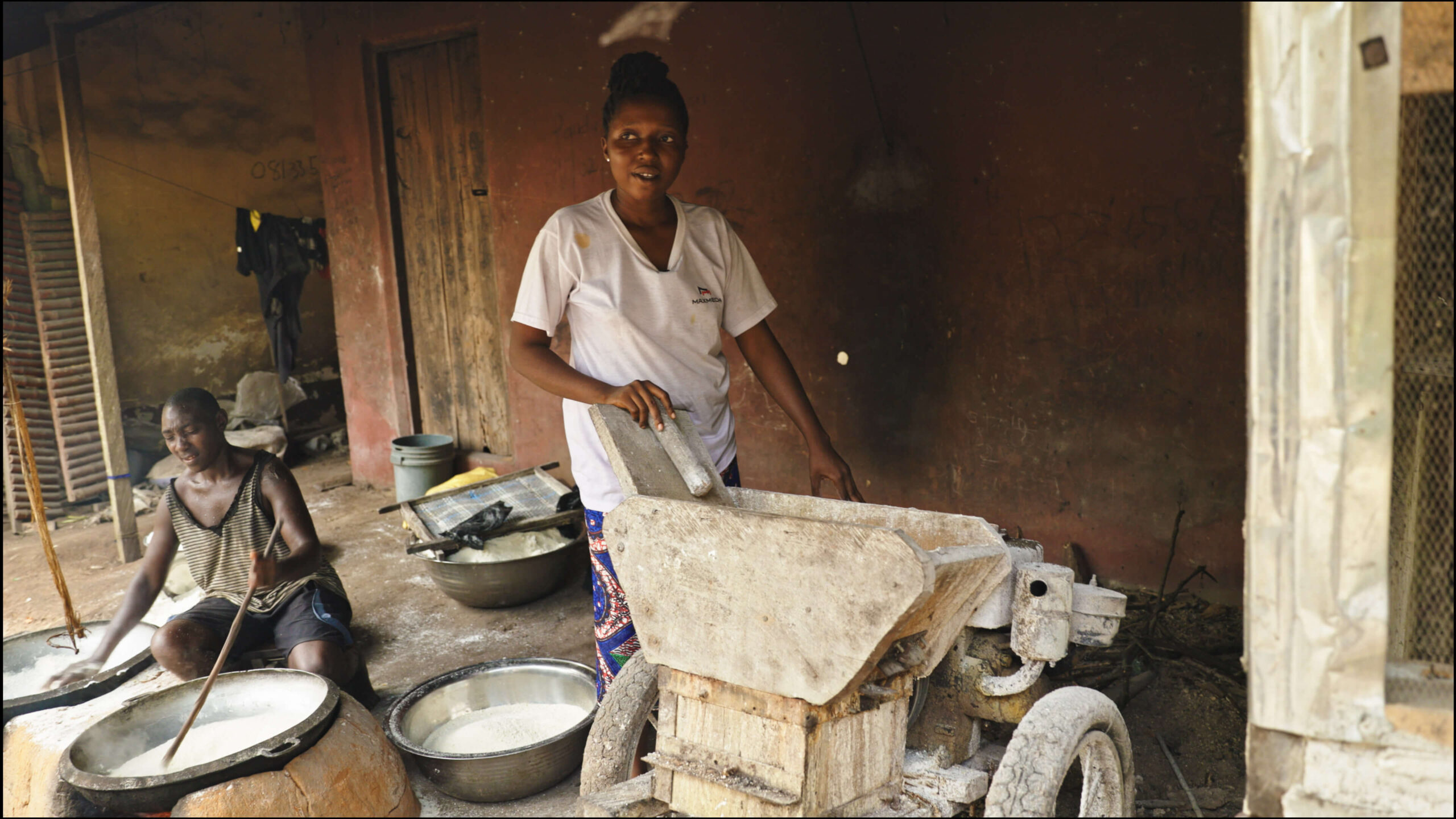 I'm a cassava processor, who encounters labor-intensive challenges in making garri, a staple food. My story takes a hopeful turn with the potential introduction of cost-effective and health-friendly solar-powered machinery.